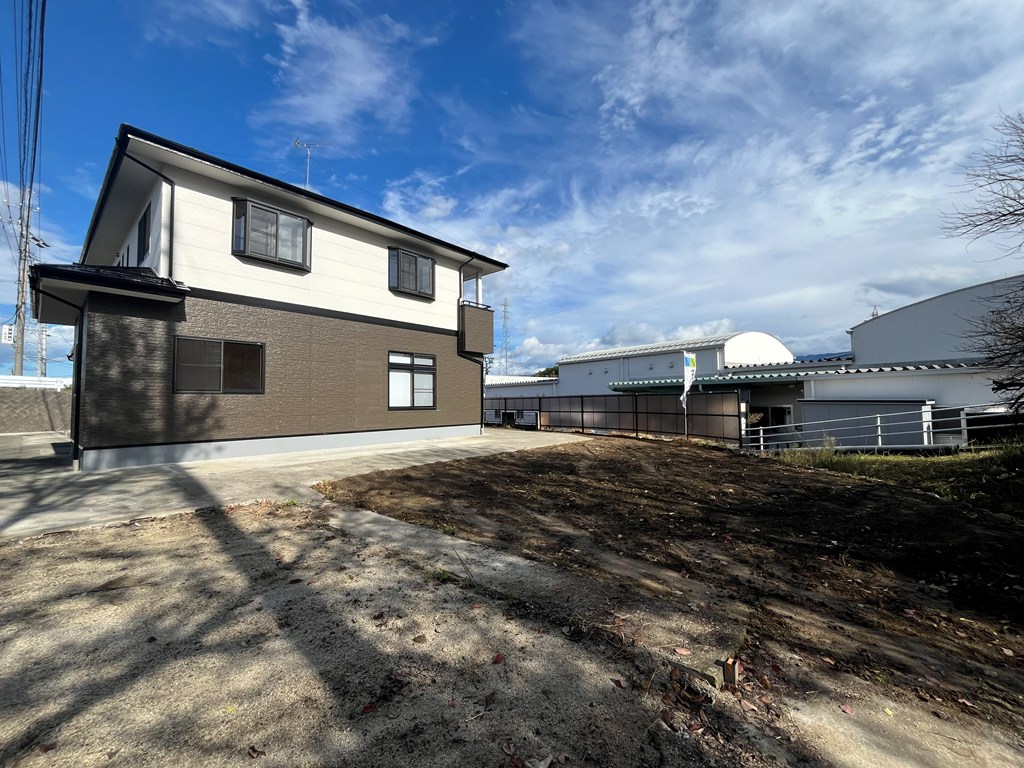 約159坪の広い敷地は、駐車4台以上が可能で、家庭菜園やガーデニングも楽しめるアウトドアスペース付き。