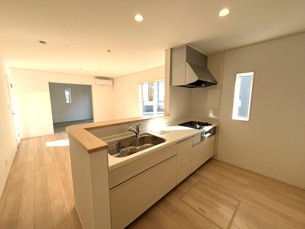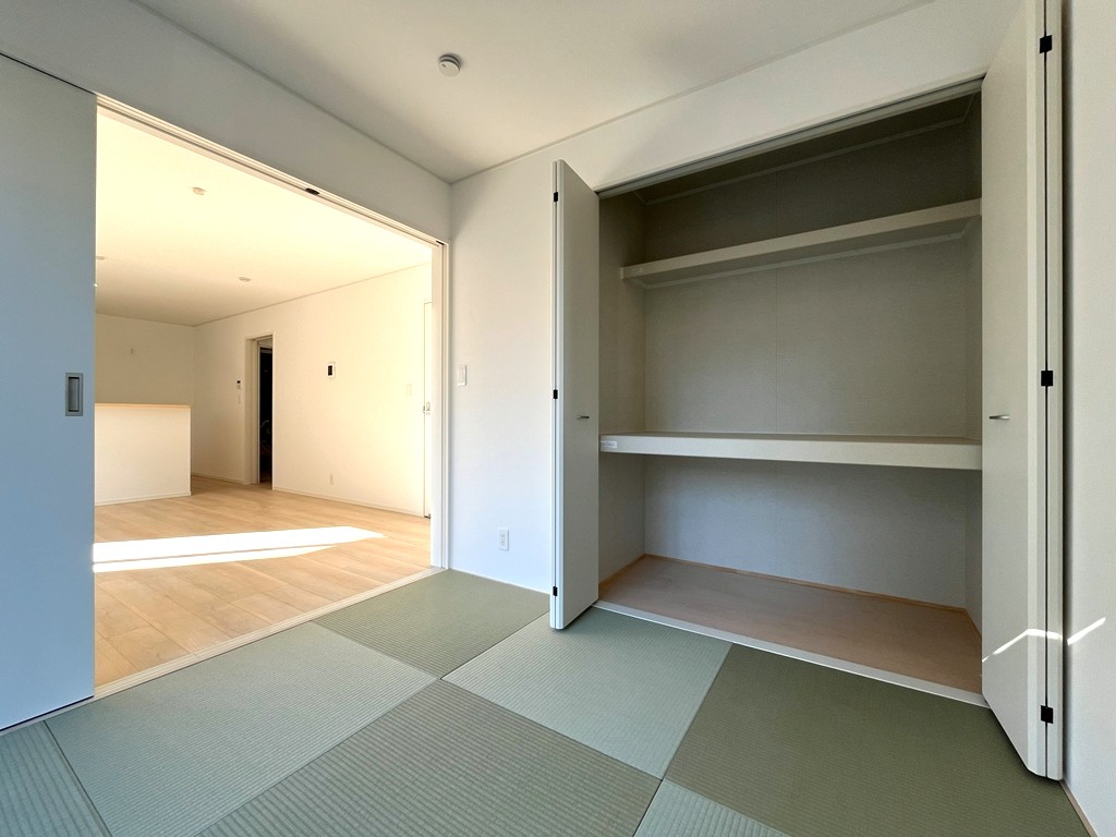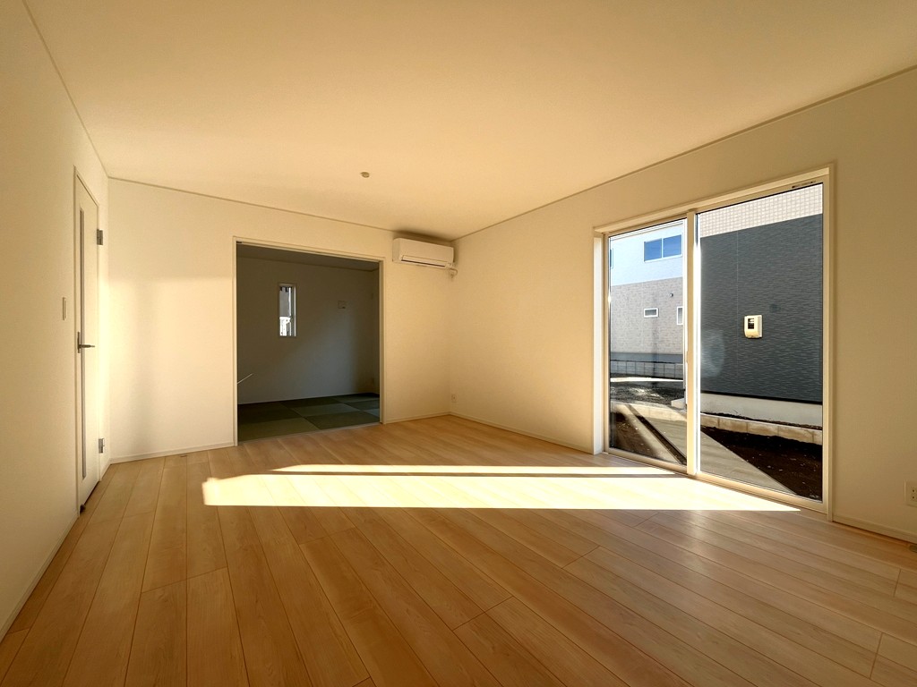 家族の様子を感じながら家事ができ、全室南向きの明るい室内が毎日の暮らしを心地よく彩ります。和室や全室収納も備え、使い勝手に配慮された間取りです。