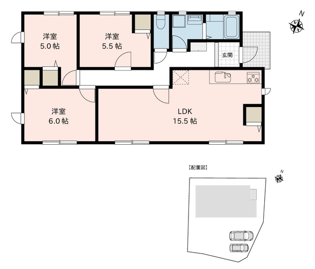 LDKは15.5帖。やわらかな日差しが差し込む明るい空間で、家族が自然と集まります。全室洋室・全居室収納付きで、住まいをすっきり保てるのも魅力。